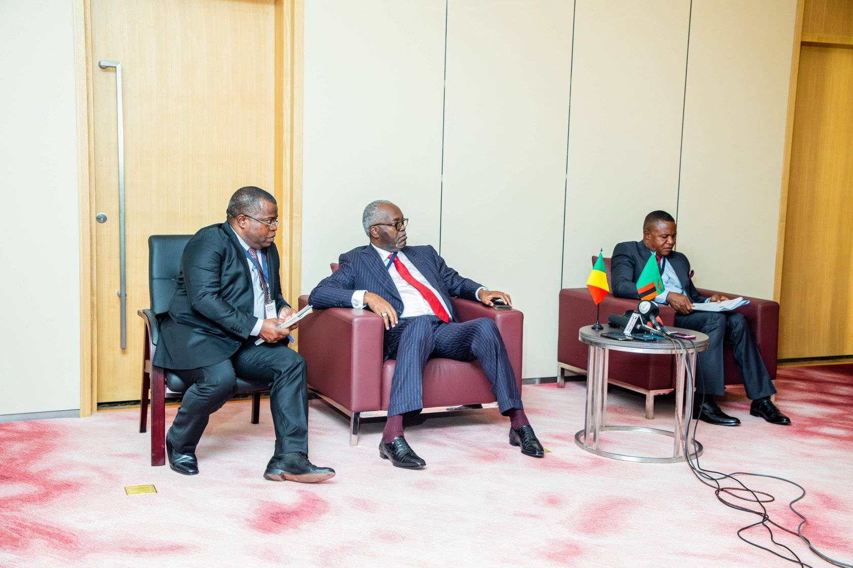 En séjour de travail en Zambie , prélude au lancement du premier symposium de la jeunesse de la ZLECAF sous le très haut patronage du Président de la République de Zambie S.E.M HAKAINDE HICHILEMA, M. le Ministre a eu un entretien avec son homologue Zambien.