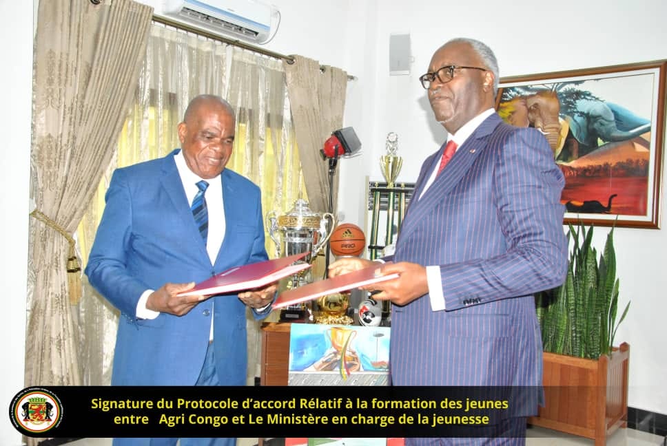 Dans la matinée du 18 Août 2023, un protocole d’accord a été signé entre L’Etat congolais représenté par le Ministre de la Jeunesse et des Sports, de l’Éducation Civique, de la Formation Qualifiante et de l’Emploi, Hugues NGOUELONDELE et l’institut Congolais d’appui au développement (AGRICONGO) représenté par Monsieur Gabriel ONDONGO.